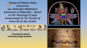 Udja, This meditation is based on the wisdom of Sage Amenemopet and principles of triad mental awareness: Amun-Ra-Ptah – Physical, Mental and Causal awareness leading to remaining aware of the self as being the Cosmic/Universal Self-Neberdjer. This is authentic mindfulness meditation. HTP